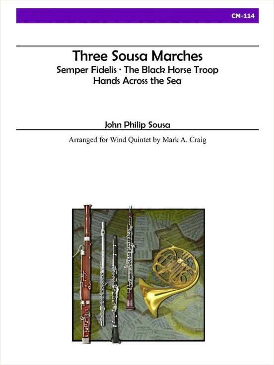 My CQ and WQ arrangements of this beloved march turned out quite well, and they are two arrangements of which I am very proud. The WQs I performed with in the Air Force Bands would regularly program this piece, finding it to be an audience pleaser that worked well for any recital, protocol function, or special event. This multi-use work is published by the United Music & Media Publishers (UMMP, formerly ALRY Publications), as part of a Three Sousa Marches set, including Semper Fidelis and Hands Across the Sea, making it a trio of Sousa’s most popular marches. This special three-march arrangement set has been recognized for its merit by the Texas UIL Committee, which chose it for its Prescribed Music List for Woodwind Quintet.
